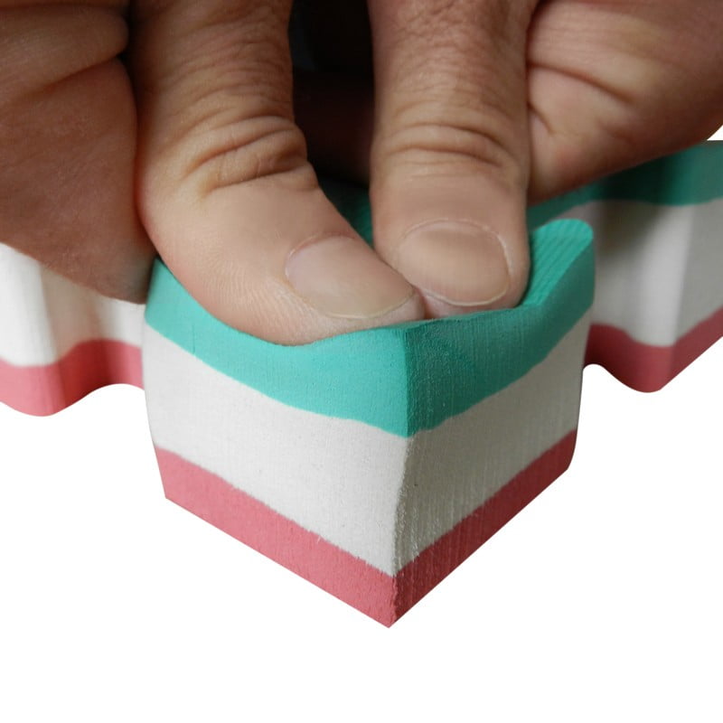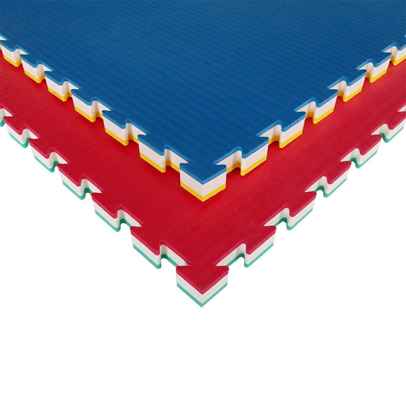 In expanded EVA (ethylene-vinyl acetate) of the new design. Greater durability, water resistant with excellent elasticity. Made with a hardness blend, to achieve strong impact absorption. The less rigid middle layer and a non-abrasive surface makes it suitable for a variety of martial arts (judo, jujitsu, ...). Frames to close the perimeter area included. EN71-1 2/3, CADMIUM, phthalates