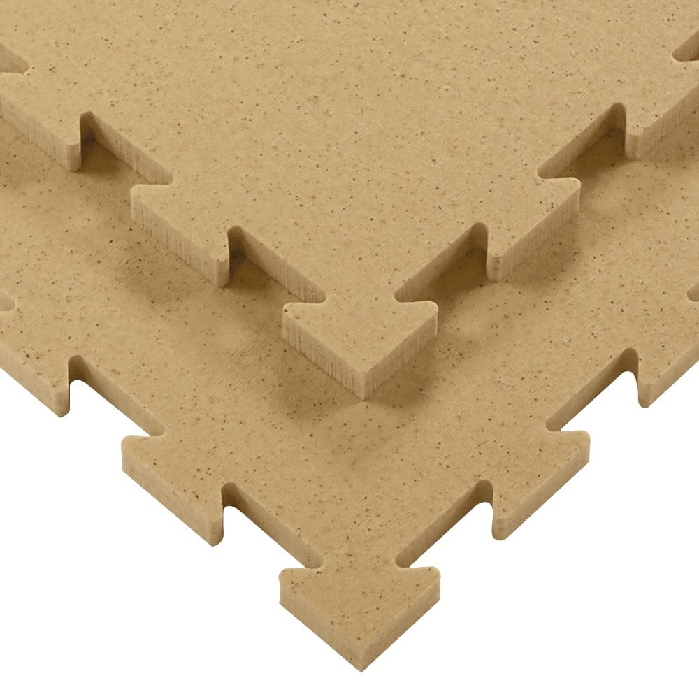 Made of polyethylene mixed with powdered cork. Cut using the water jet machine, in a special locking system that makes it reversible. The product includes perimeter frames for the arrival area. The non-slip surface is in effect “rice straw.” » Suitable for multiple recreational and recreational activities that require a soft floor covering for greater comfort even after many hours of activity. Frames to close the perimeter area, including Also available in 100cm x 100cm VERSION Turn off the water. Non-toxic and hypoallergenic.