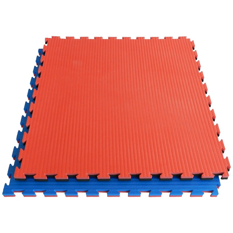 Made of expanded EVA (ethylene vinyl acetate), a closed cell monodensity, printed and punched in a special locking system with reversible. The non-slip coating is obtained on the hot surface, which creates a film effect which facilitates cleaning operations of the product. The rug is two tone compresivo perimeter frames. Suitable for disciplines where falls or projections are performed on the ground, which gives the tatami a strong shock absorption. Frames to close the perimeter area included. EN71-1 2/3, CADMIUM, phthalates