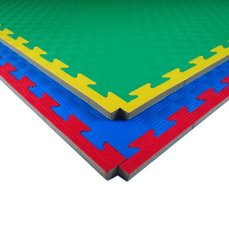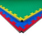 Made of expanded EVA (ethylene vinyl acetate), a closed cell monodensity, printed and punched in a special locking system with reversible. The non-slip coating is obtained on the hot surface, which creates a film effect which facilitates cleaning operations of the product. The rug is two tone compresivo perimeter frames. Frames to close the perimeter area included. USE: Multidisciplinary and various interior uses.