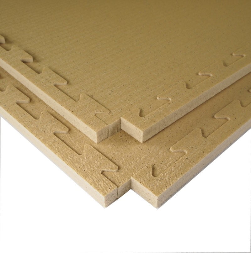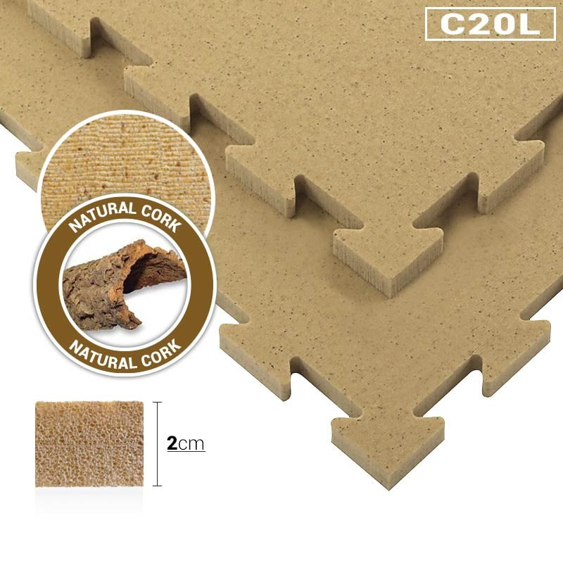 Made of polyethylene mixed with powdered cork. Cut using the water jet machine, in a special locking system that makes it reversible. The product includes perimeter frames for the arrival area. The non-slip surface is in effect “rice straw.” » Suitable for yoga, Tai Chi, Shiatsu and other disciplines, requiring softness of the surface for greater comfort, even after many hours of activity. Frames to close the perimeter area, including Shut off water. USE: Yoga, Tai Chi, Shiatsu and other disciplines, requiring softness of the surface for greater comfort, even after many hours of activity.