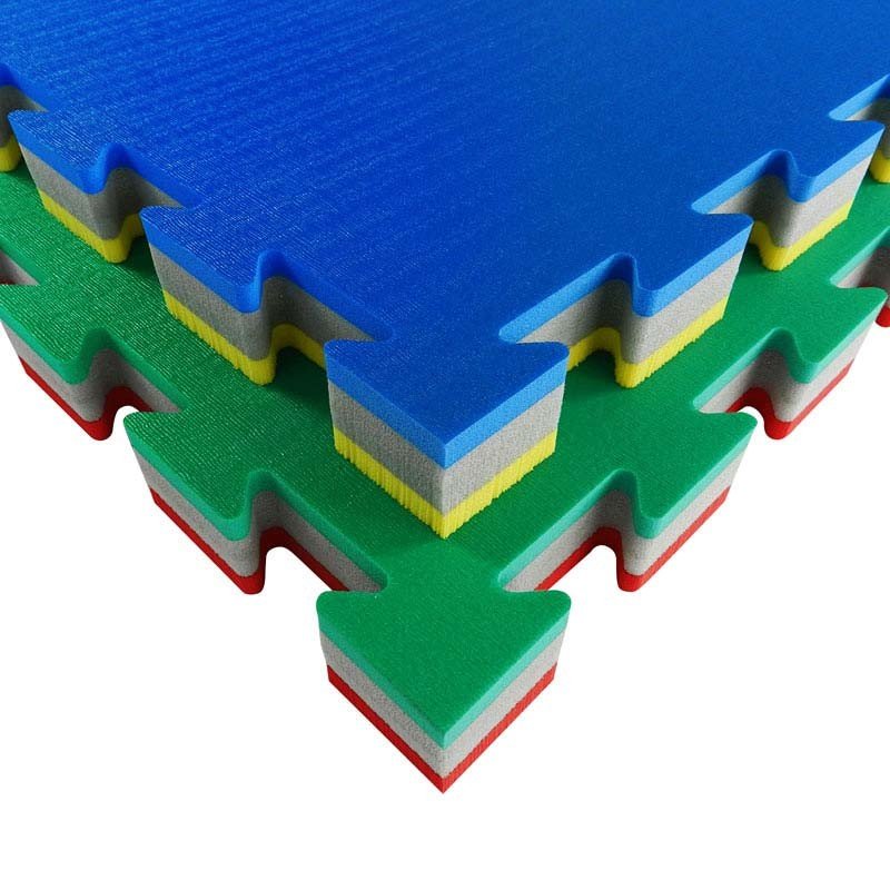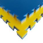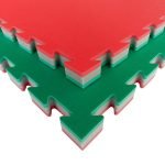 Made from closed-cell cross-linked polyethylene foam, it is combined with a mixture of densities to achieve high shock absorption. It is made by waterjet cutting, in a special locking system that makes it reversible. The product includes the perimeter frames for finishing the area. The non-slip surface has a “rice straw” effect finish.