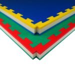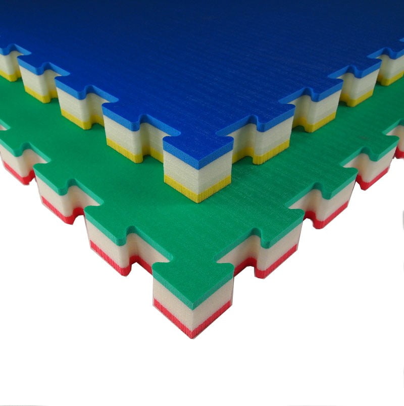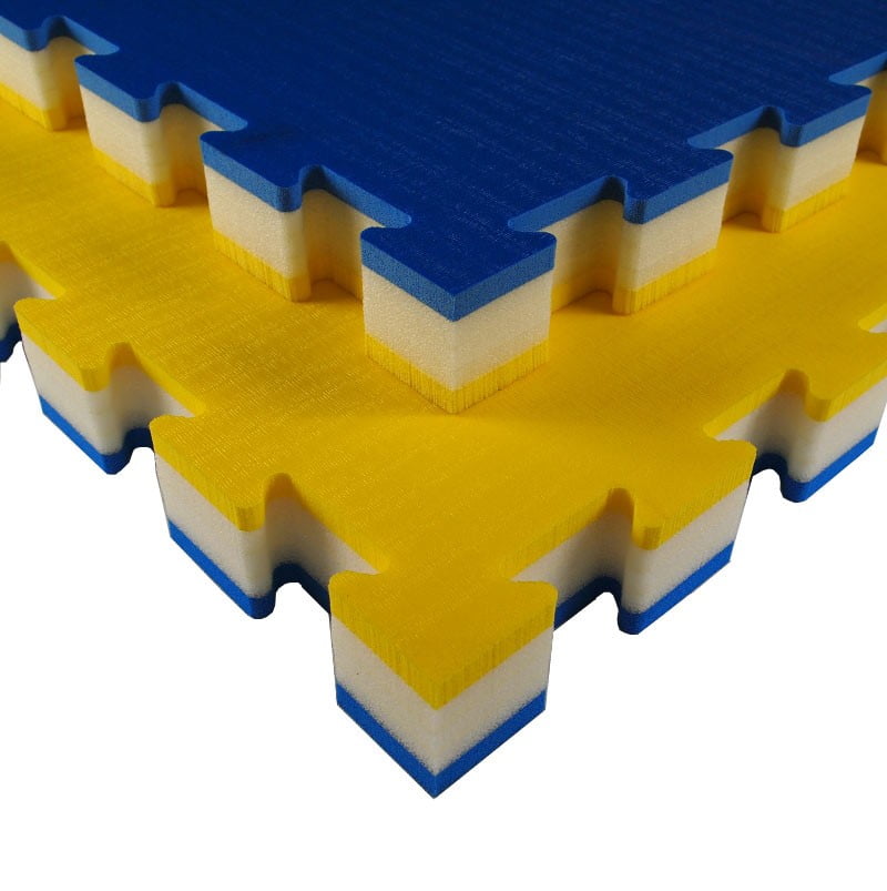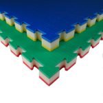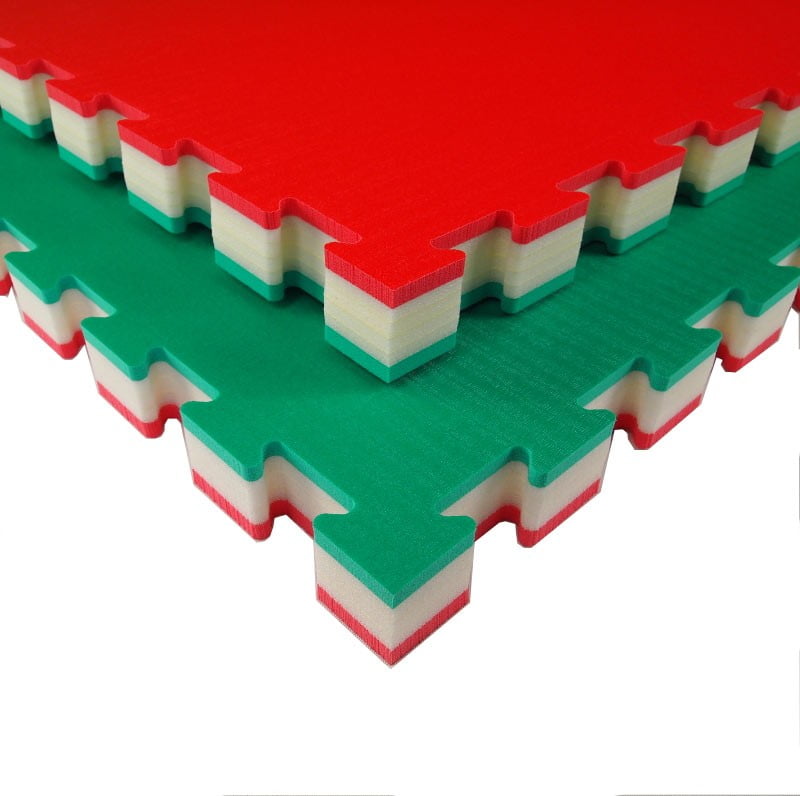 Made of closed-cell cross-linked polyethylene foam, it is coupled with a density mixture to obtain strong impact absorption. E 'made by means of water jet cutting, in a special locking system that makes it reversible. The product includes the perimeter frames for the arrival area. The “rice straw” non-slip surface effect. » Frames to close the perimeter area, including turning off the water. USE: Judo, JuJutsu, Aikido, MMA, presentations and other disciplines, where they fall or protrude from the ground, requiring the tatami to have strong shock absorption.