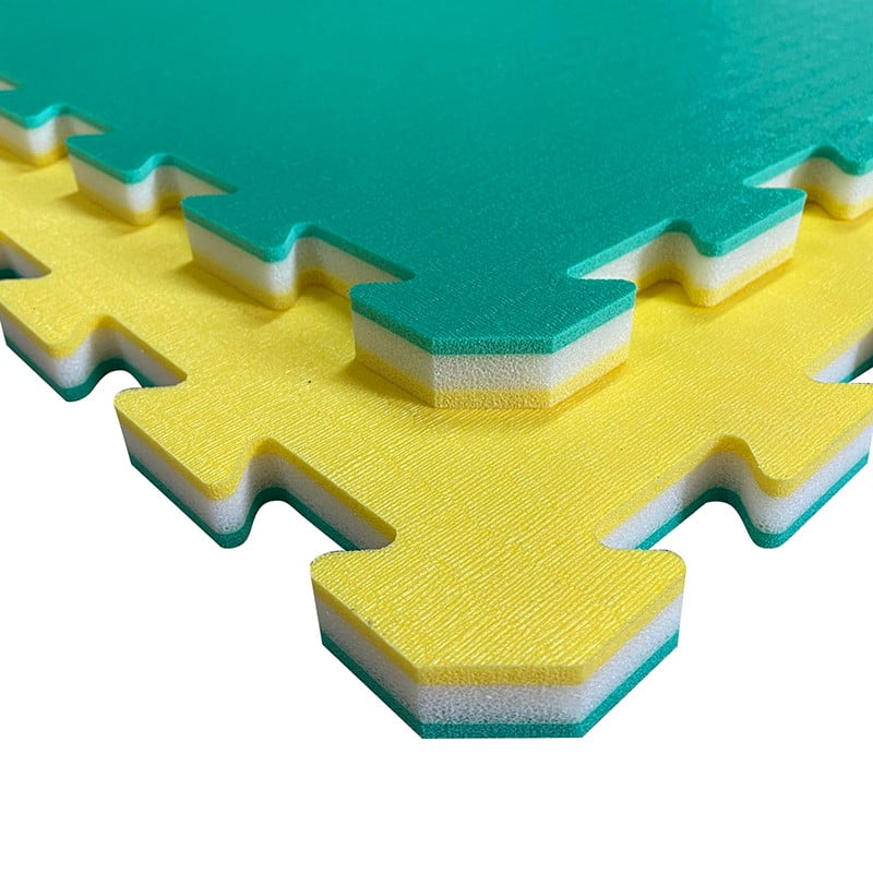 Made from closed-cell cross-linked polyethylene foam. The layers are hot coupled and the interlocking is cut with a water jet. This SOFT tatami is also particularly suitable for fun and recreational activities (such as the creation of play areas for children, etc.), as well as for the multiple uses of the home gym (yoga, pilates, massages, etc.). .) thanks to its softness. Water shortage. Non-toxic and hypoallergenic