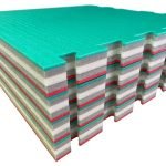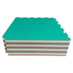 Made of closed-cell cross-linked polyethylene foam, it is coupled with a density mixture to obtain strong impact absorption. E 'made by means of water jet cutting, in a special locking system that makes it reversible. The product includes the perimeter frames for the arrival area. The “rice straw” non-slip surface effect. »